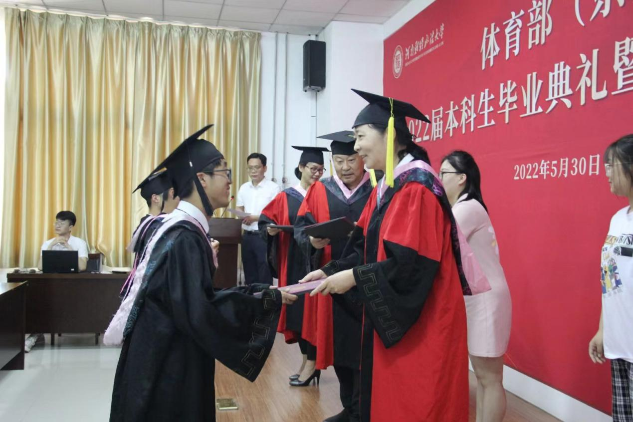 在现场人员热烈掌声中,体育系举行了学位授予仪式。毕业生代表从导师手中庄严接过学位证书,接受拨穗正冠,为大学求学经历划上圆满的句号。